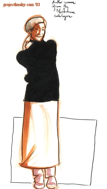 Marker sketch of this lady in a magazine. She was, like, trying to sell clothes. Y'know, by sending out photos of attractive women wearing them. And then everybody else would see the pictures and be all 'Dude! If I wore those clothes I would be pretty as a princess' and then they'd go out and buy 'em. It's genius, really. |